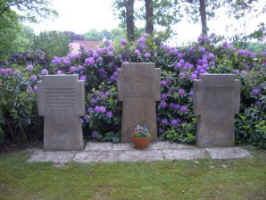 Rhododendronbüschen an der schmalen Dreieckseite: linke Stele:
