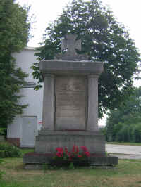 Denkmal an der Hauptstraße mit Widmung an der Vorderseite. An