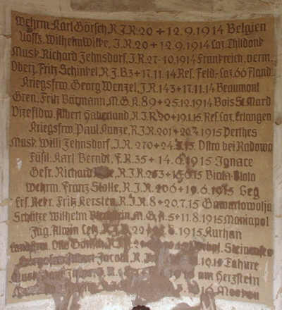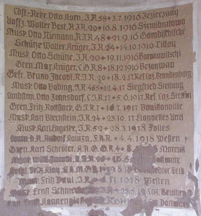 eine Wandplakette mit den Namen der Opfer des 1. WK. Im unteren Bereich