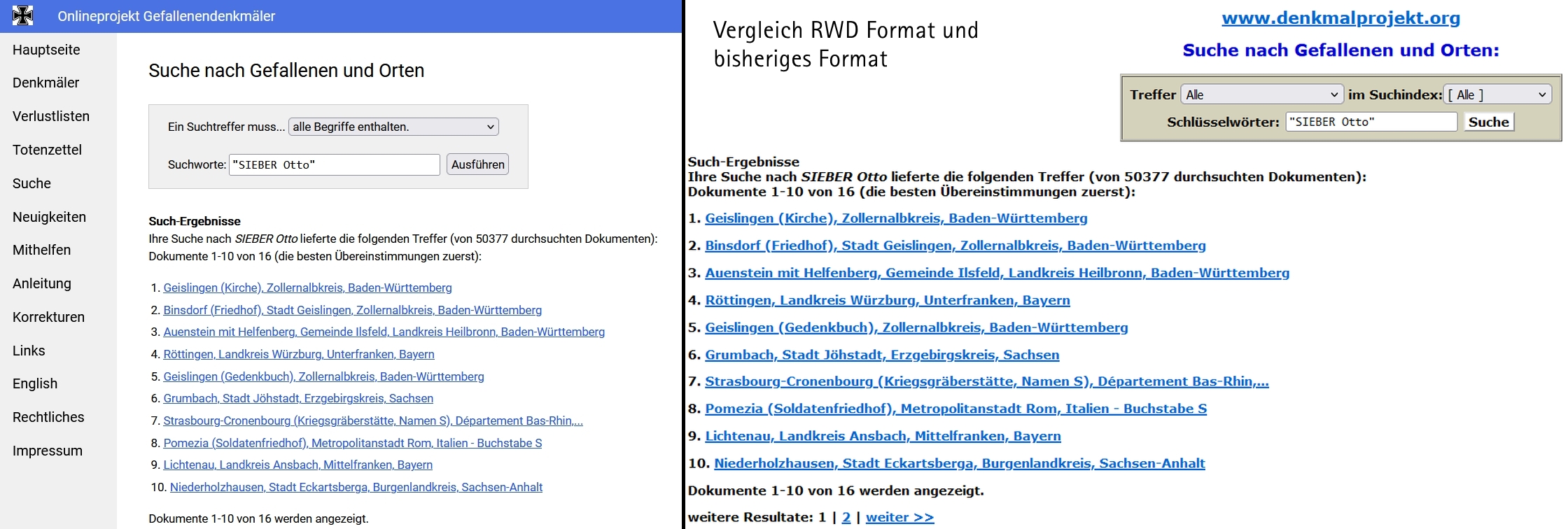 Auch die Ergebnis-Seite unserer Fluid-Dynamics-Suche wurde jetzt auf das RWD Format von denkmalprojekt.org umgestellt. Dies erforderte umfangreiche Änderungen an den Programmen, die eventuell temporäre Auswirkungen auf die Darstellung dieser Seite haben. Ob Sie davon betroffen sind und wenn ja, wie Sie diese Auswirkungen beseitigen, können Sie im Folgenden lesen.