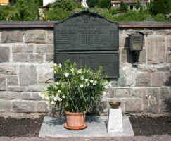 Friedhofsmauer: zwei Gedenktafeln übereinander