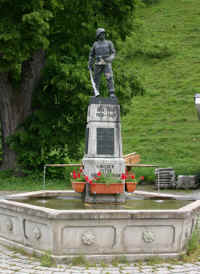 Bei der Kirche: als Brunnen gestaltet, oben mit Soldat,