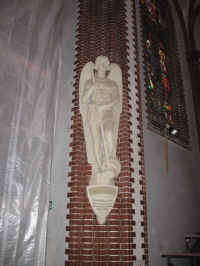 Links, am Altar, über Kopf, ein Engel mit Speer. Ihm zu Füßen eine Schlange, im Todeskampf, den Speer im Hals.