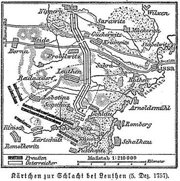 de.wikipedia.org/wiki/Schlacht_von_Leuthen findet sich folgende Beschreibung der Schlacht von Leuthen: