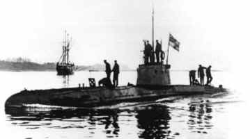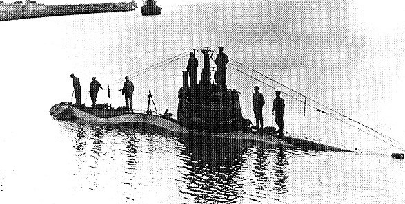 UB4. Drei Mann schwammen noch oben auf, einer schien am Leben, worauf der Kommandant