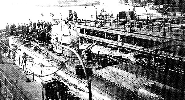 Das Bild oben zeigt UC 70 in der Werft bei Blohm & Voss (Quelle: Wiss. Inst. für Schiffahrts- u. Marinegeschichte)