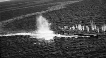 den Angriff mit Bordwaffen und Wasserbomben aufnahmen. U-118