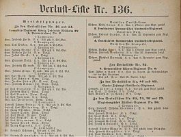 Quelle: Deutsch-französischer Krieg, 1870-71, Verlust-Liste. Hrsg.: Königliche Geheime Oberhofbuchdruckerei, Berlin. Gebundene Zusammenfassung der fast täglich während des Krieges herausgegebenen Verlustlisten.