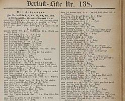Quelle: Deutsch-französischer Krieg, 1870-71, Verlust-Liste. Hrsg.: Königliche Geheime Oberhofbuchdruckerei, Berlin. Gebundene Zusammenfassung der fast täglich während des Krieges herausgegebenen Verlustlisten.