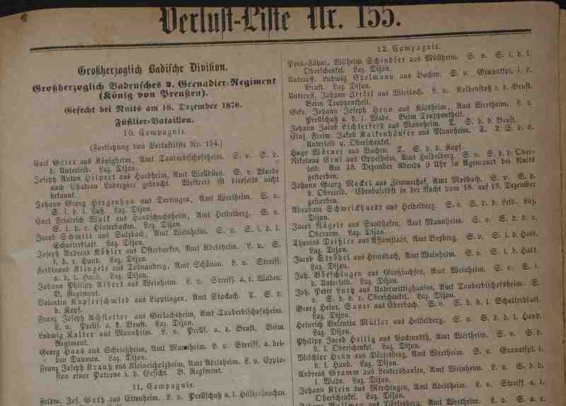Verlustlisten der deutschen Armee im Feldzug 1870/71