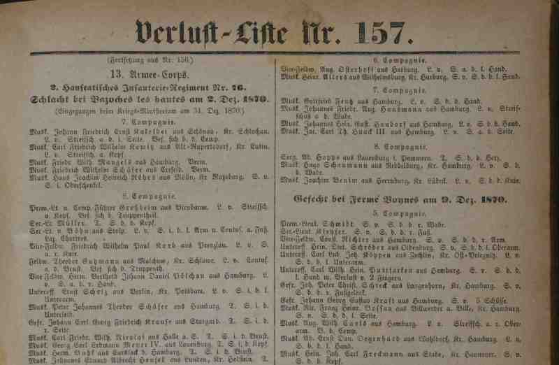 Verlustlisten der deutschen Armee im Feldzug 1870/71